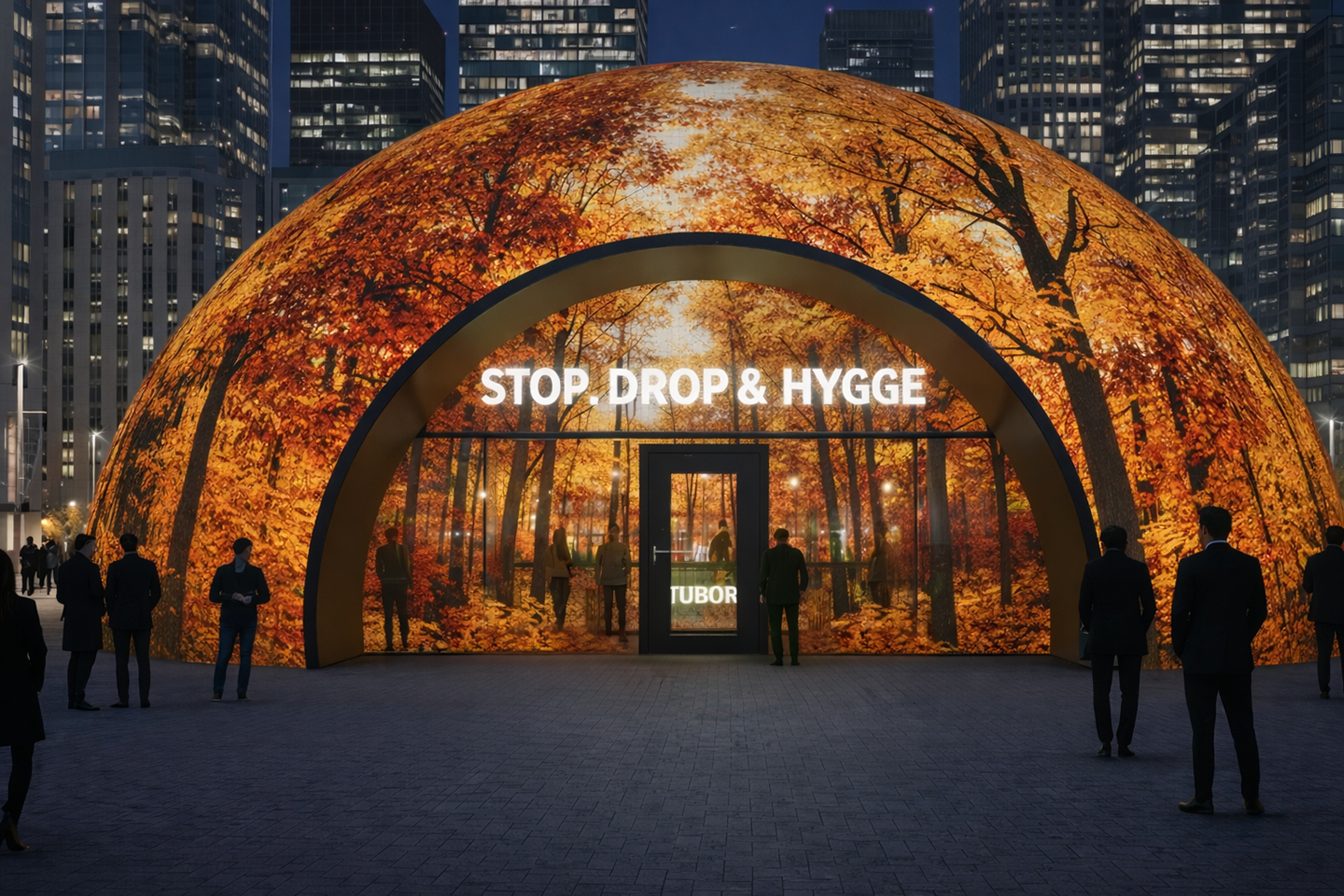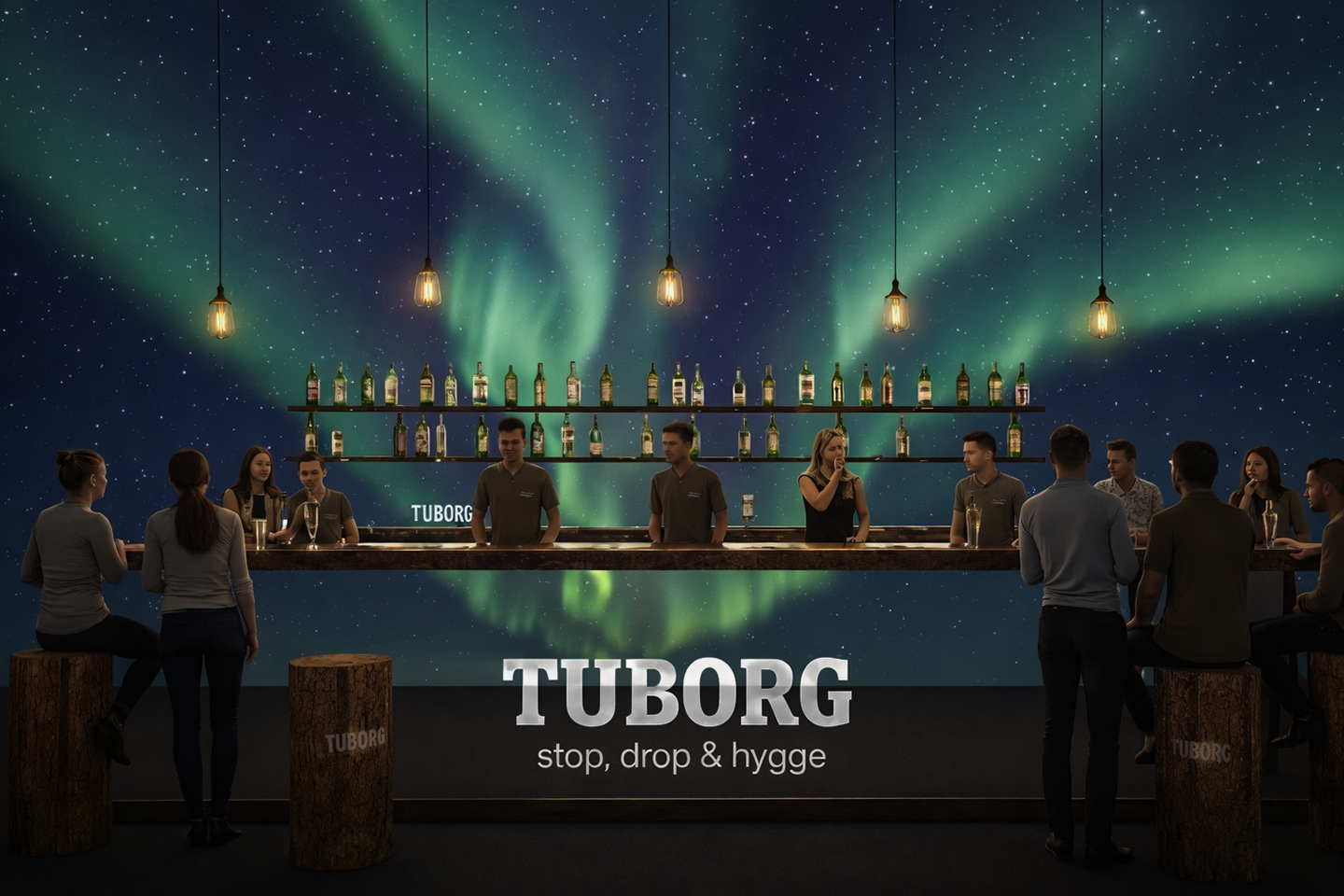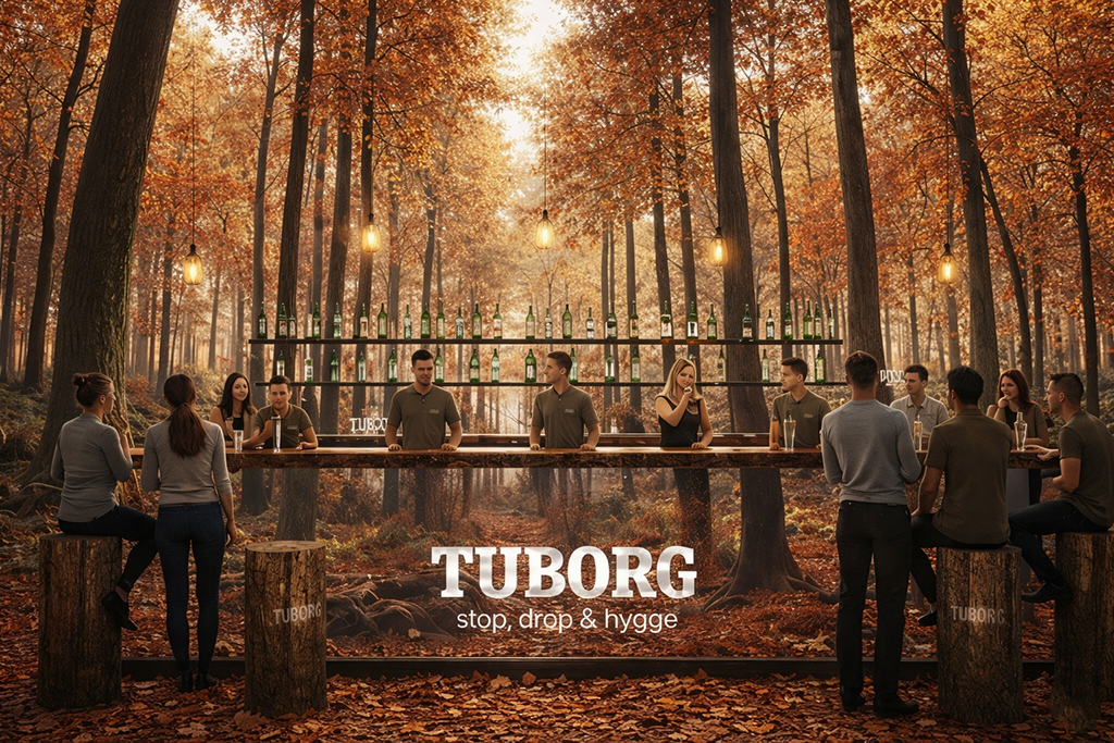A pop-up hygge dome hosted in the financial district where performance pressure runs rampant. Doors open at 5pm, acting as a natural off-ramp to chill and get cozy after a long work day. Projections in the dome can change to retain novelty and interest. The Danish scenery in the projections further connects the activation to Tuborg's heritage.